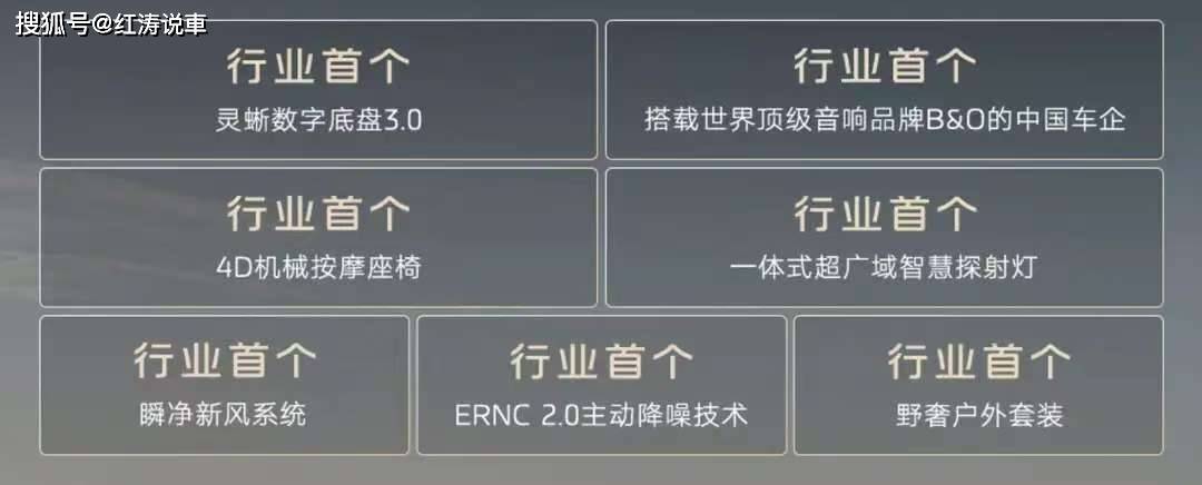智己LS9的车内采用2+2+2的6座布局,配备4D机械按摩座椅、B&O音响系统、座舱清风系统和野奢户外套装。