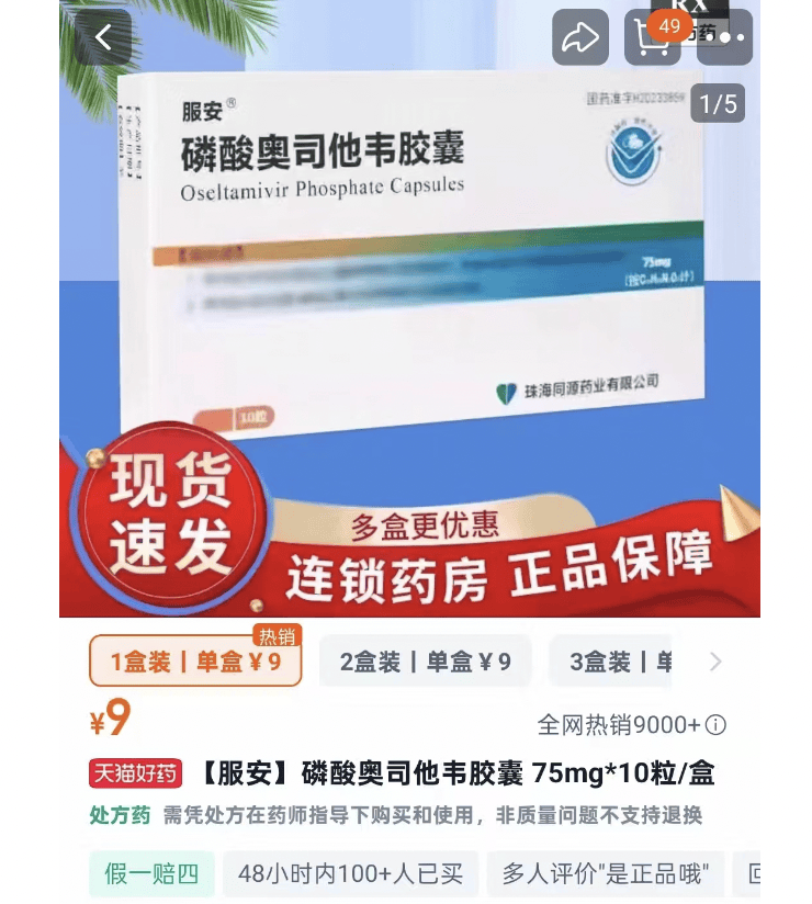 毛先生向记者提供了药盒照片,显示为10粒装“磷酸奥司他韦胶囊”药品生产厂家为珠海同源药物有限公司,记者联系该公司,说完毛先生遇到的情况,工作人员笑了笑说道,因为最近流感频发,奥司他韦销量“疯涨”,他向记者透露,“10粒装的话我们最高零售价是135元。”